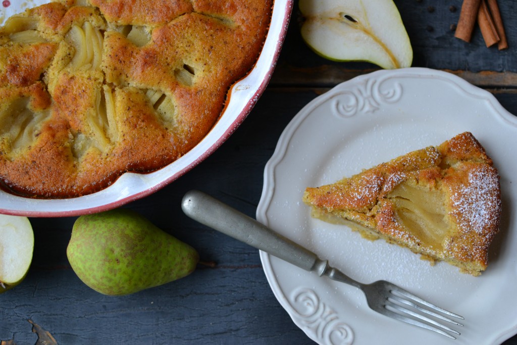 Hrušky jsou snad nejpodzimnější ovoce, které si dovedu představit. Dostala jsem jich hromádku od kamarádky Lidušky a věděla jsem jistě, že z nich chci připravit nezapomenutelný dezert. A povedlo se! S výsledkem jsem moc spokojená, ve formě smutně leží poslední kousek koláče.