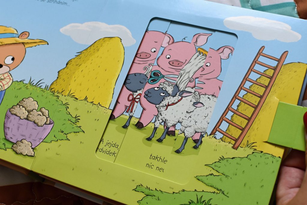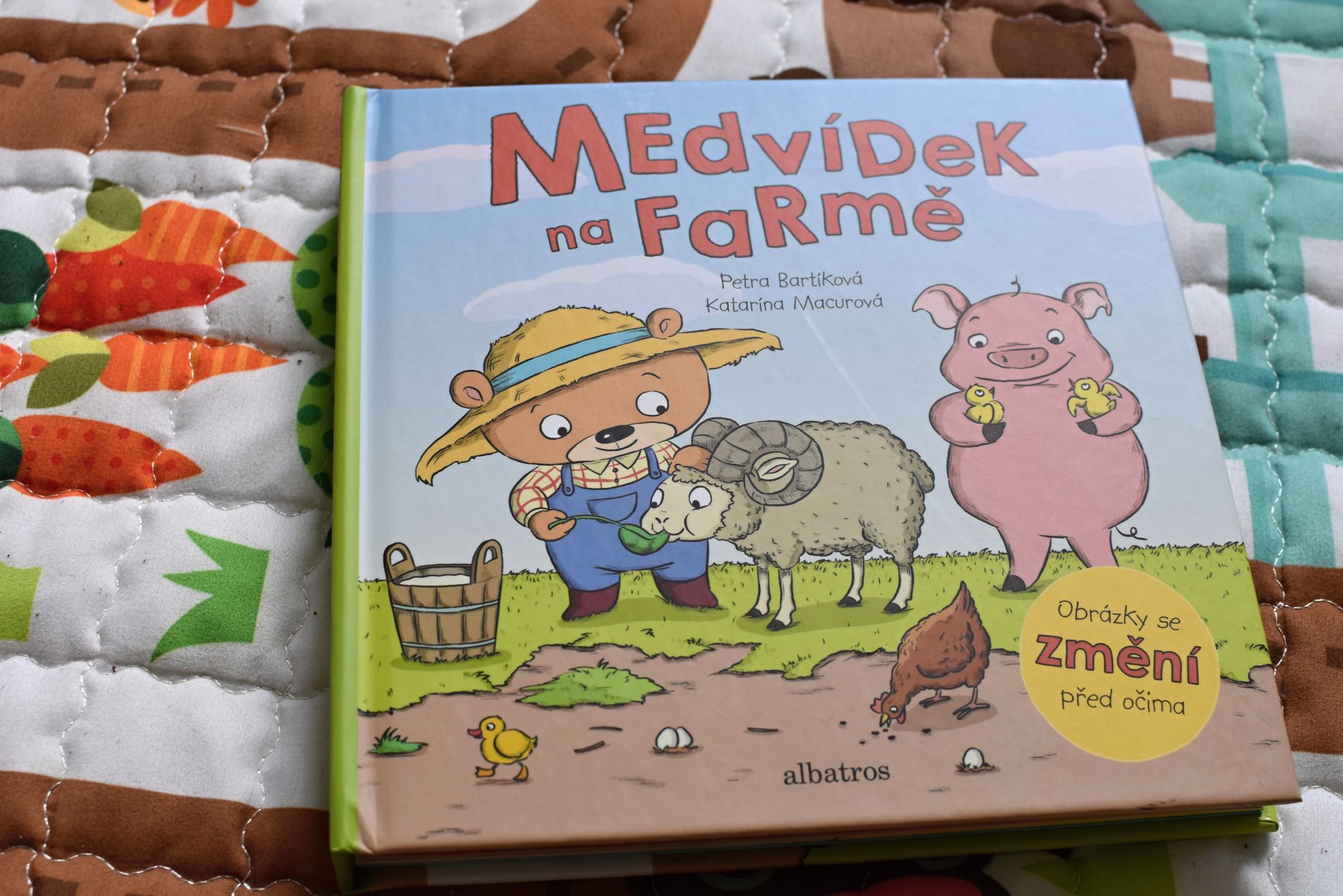 Pro ty nejmenší děti je knížka Medvídek na farmě. Jde o knihu, která má pohyblivé obrázky na každé stránce. A právě tyhle knihy jsou u nás teď nejvíce v kurzu. Žofii baví tahat za kousky knížky a já jí u toho vyprávím příběh. Autorkou knihy je Petra Bartíková a doporučuji si její tvorbu na stránkách Albatrosmedia prolistovat, pokud máte malé děti jako my.