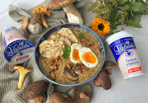 Houbová omáčka s vajíčkem a karlovarským knedlíkem